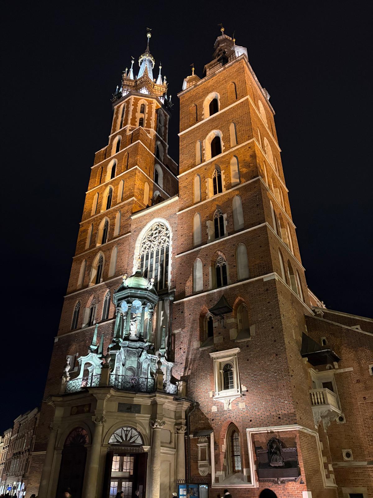 - découverte à pied de la vieille ville de Cracovie : la Halle aux draps, la basilique Notre Dame.