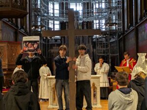Le chemin de croix du Vendredi Saint, débuté dans la cour du collège, s’est terminé dans la basilique Notre Dame de Boulogne.